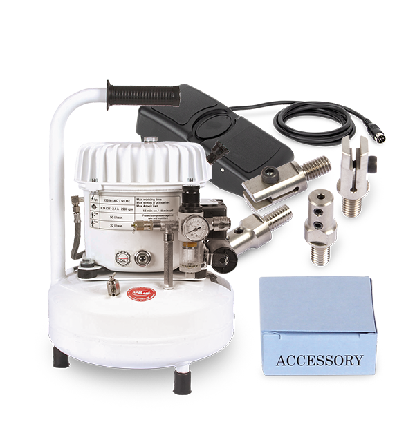 Supplied accessories: foot pedal regulator, 2 handpiece holders.