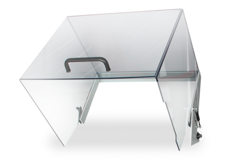 The secured housing is a totally transparent protection compatible with the full range of MASTERLAM®. Its opening stops all movements of the machine*, it offers
