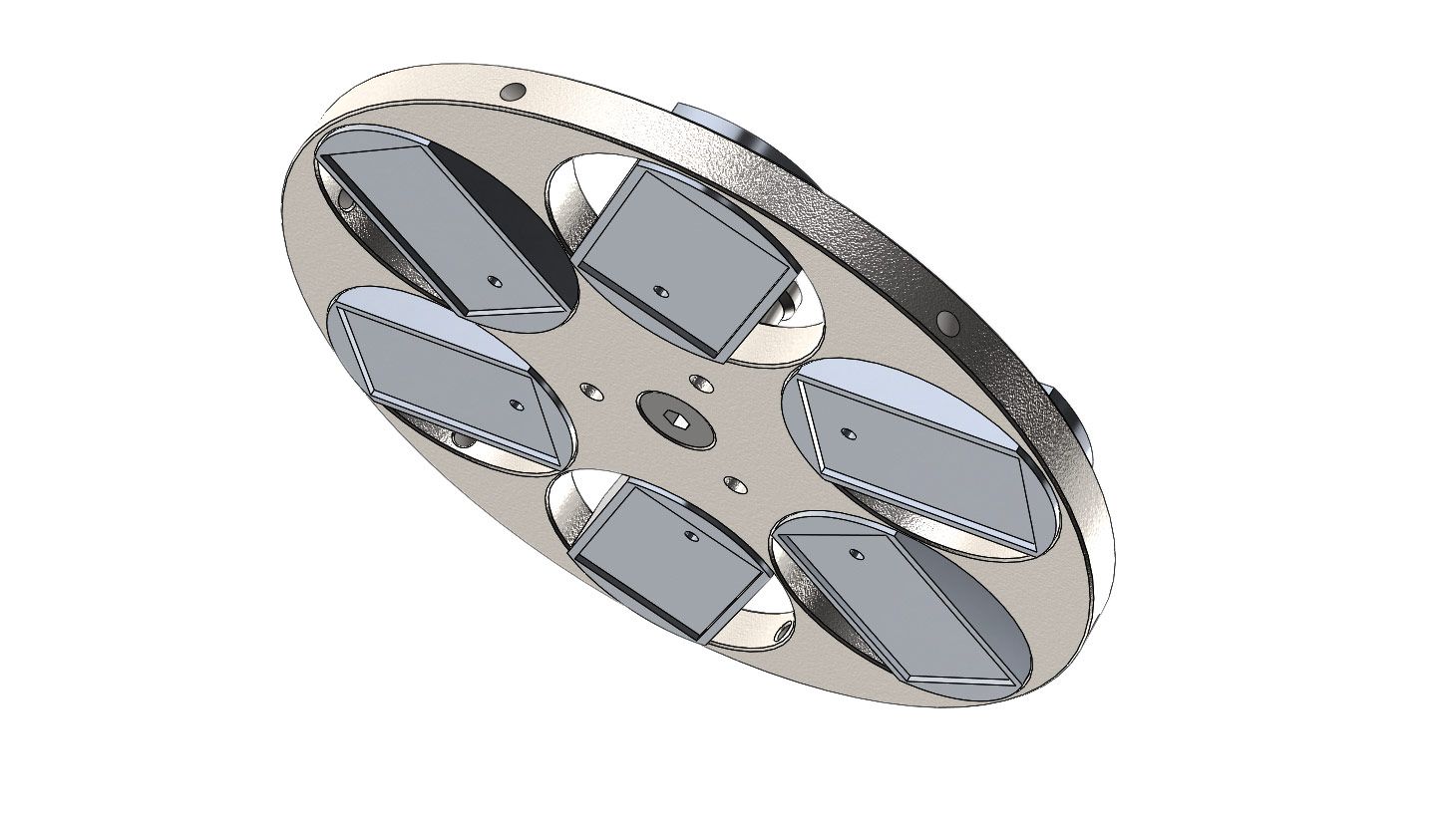 Ø 160 mm central pressure sample holder for eccentric restriction of non-embedded complex geometric parts.