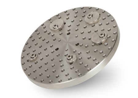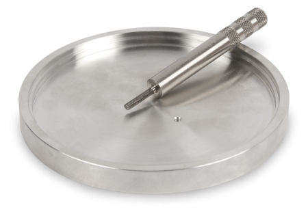 Ø 160 mm central pressure sample holder for eccentric restriction of non-embedded complex geometric parts.