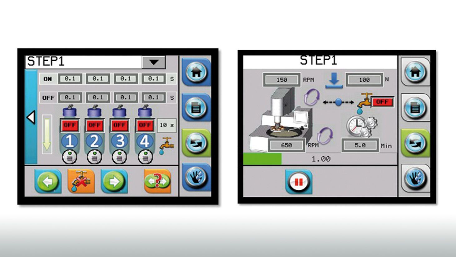 The DISTRILAM® automatic dispenser is controlled directly from the machine screen via a connector. It is instantly recognised by all MASTERLAM® polishing machines. The dispenser is equipped with 4 independent circuits consisting of 3 standard peristaltic pumps for precise dosing of diamond liquids and 1 higher flow peristaltic pump for dosing lubricant or colloidal abrasive. It operates without compressed air or electrical connection. The DISTRILAM® automatic dispenser is an essential accessory for automated use of MASTERLAM®. This device guarantees reproducible work and economical use of consumables.