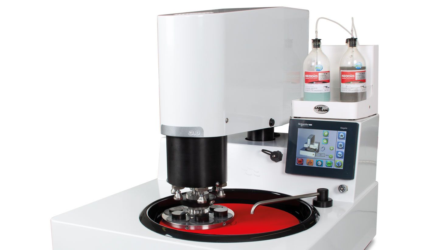 The MASTERLAM®3.0 is the metallographic polishing machine without concession. Polishing can be carried out with central pressure or individual pressure and can be equipped with a stock removal measuring system.
