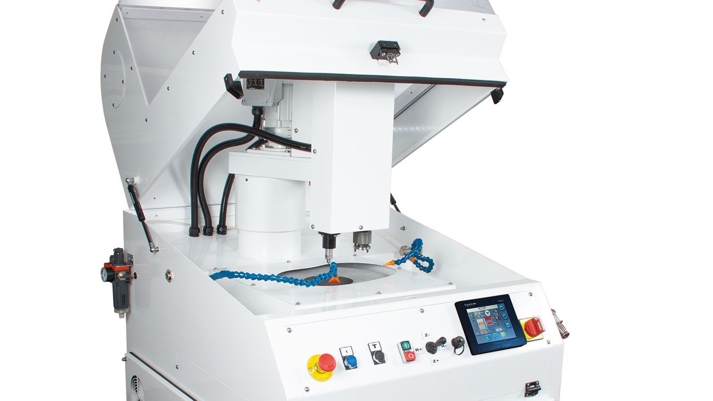 The R axis enables precise positioning of the sample holder in relation to the grinding wheel in order to make to most of the available abrasion surface.